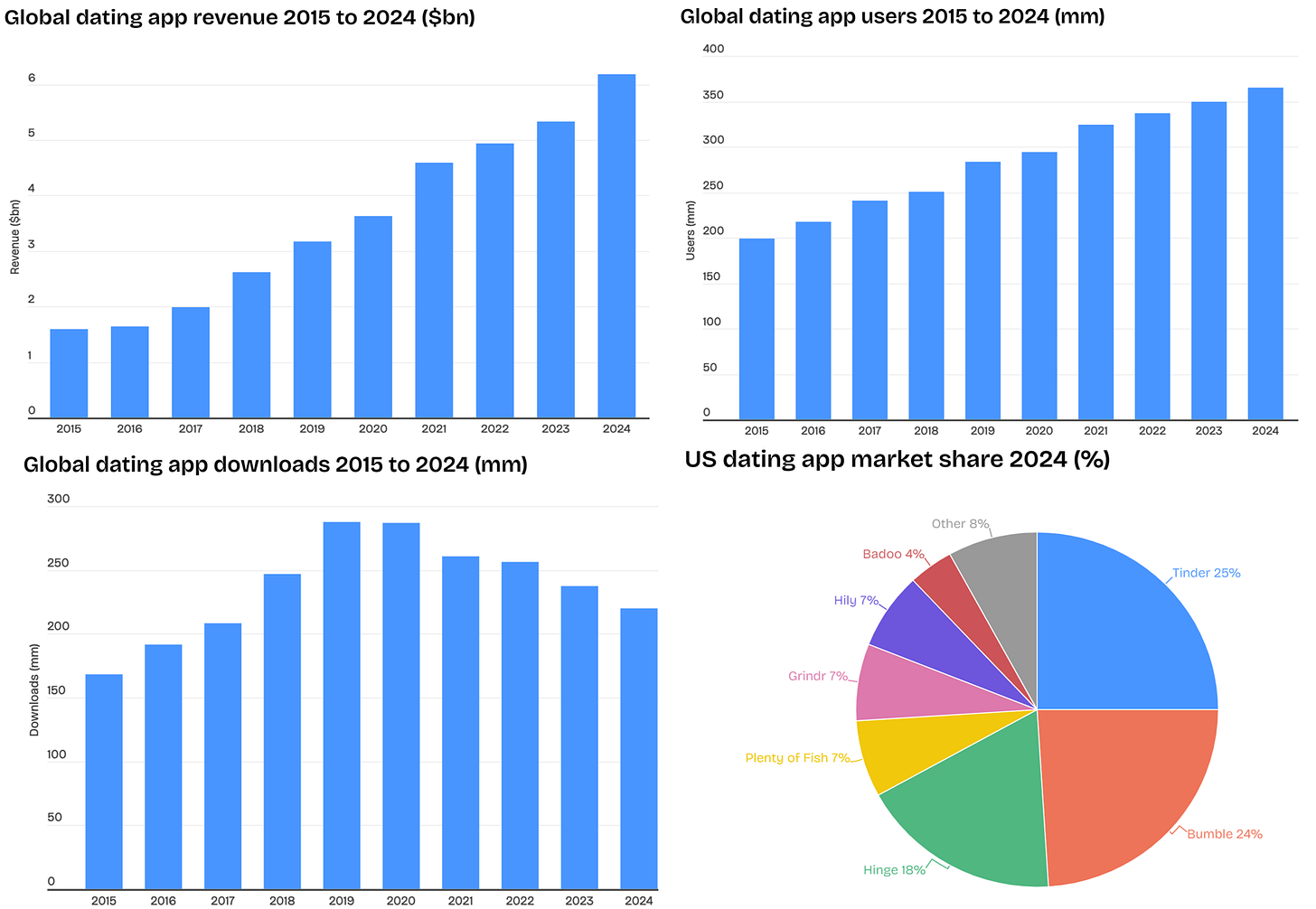 The ELO rating system has received criticism for its popular integration into many dating apps, and Tinder now claims to use a different ranking algorithm. Currently, dating apps are losing their enchantment, though they aren’t going anywhere ($6.18 billion revenue in 2024). New users on dating apps are stagnating, and downloads are decreasing; these companies need new, innovative methods to lure more people in. Non-generative AI methods like machine learning have been integrated into programs since the 2010s. As the number of users are stagnating on dating apps, AI is moving to the forefront. Apps are now integrating generative AI and Natural Language processing into their programs to improve matches.