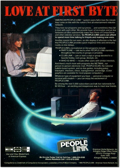 Computer dating services started in the 1960s and evolved to primitive chat rooms or connections via phone, video, or photo by the 1980s. However, they were not very well-received by some and had little “filtering” capability and sparked complaints from users: “No doubt about it. There are people on the network who are plain crazy," says Pam Dunn, alias Zebra3, of New York City. "Someone will talk to you on the private line, and you'll be having a great conversation. You're chatting for 15 minutes, then all of sudden they may ask for something really obscene."