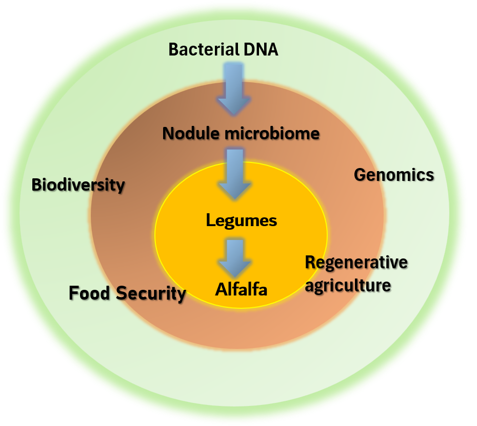 Think about the main topics and concepts of your research. What words capture the broad implications of your work (food security), the narrow implications (nitrogen fixation), and the species/subject (alfalfa).